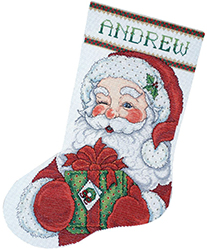 |   Holy Night Stocking $72.95 |   Santa & Kitten Stocking $46.95 (18ct aida included) |   Andrew Stocking $32.95 (kit includes 14 count aida, finishes 17" long) |